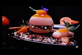 Esfera de mousse con mandarinas,ingredientes:Para la esfera: