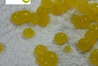 Ponemos en el congelador una taza co aceite de girasol a enfriar por lo mennos media hora. Hacemos el zumo de mandarina, lo pasamos a un caldero, disolvemos el sobre de agar. Ponemos a calentar hasta que hierva. Cargamos la jeringa, sacamos el aceite del congelador y vamos echando poco a poco el zumo con la jeringa en el aceite.