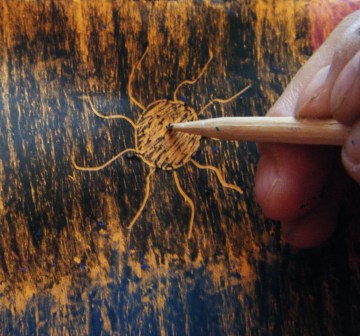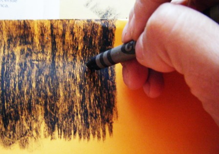 3.- Con una punta realizar un dibujo, las líneas del mismo son del color del cartón.4.- El trabajo terminado.
