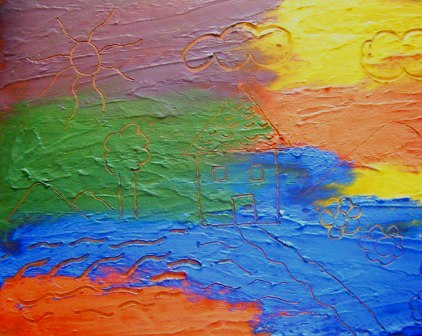 - Remojar un pedazo de jabón blanco en una taza con agua por 24 horas.- Batirlo hasta que quede a punto de nieve.Actividad de esgrafiado:1.- Distribuir el jabón batido en recipientes y agregar los colores. 2.- Pintar libremente sobre el cartón.