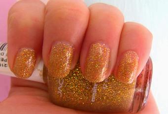 Se llama Givre Dorado, juro que así esta escrito, es el n° 201. Esta bueno porque la base es transparente y para que me quede así de lleno de brillos use unas 4 capas (o mas) y no se ve la uña super gruesa o pesada.