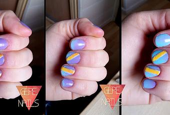 Como véis, he combinado el nuevo esmalte térmico con otro térmico (el que os hablaba arriba que era naranja-amarillo). Para hacerlo ya del todo precioso, he puesto unas rayitas del holográfico de mis amores ♥♥♥ Me lo regaló mi chico y es el mejor del mundo. Y el pintauñas también xP jajaja
