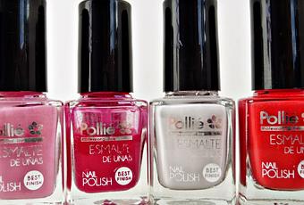 1. Esmalte FRESA de Pollié 2. Esmalte ROSA CHICLE de Pollié3. Esmalte CORAL de Pollié4. Esmalte NIEVE de Pollié
