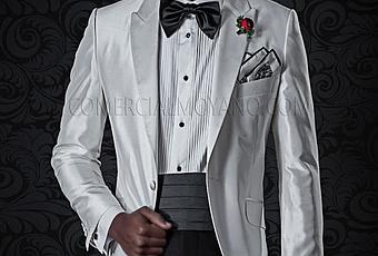 Traje a medida con chaqueta de shantung blanco combinada con pantalón negro fresco lana. Esmoquin 2261 Colección Black Tie Ottavio Nuccio Gala.