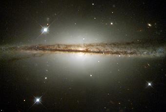 ESO 510-G13 es una galaxia espiral situada aproximadamente a una distancia de 150 millones de años luz en la constelación de Hydra. La nube de polvo ecuatorial esta fuertemente deformada, lo que quizá puede indicar que ESO 510-G13 esta interactuado con otra galaxia, de ser así sería una excelente ocasión para estudiar la formación y evolución de las galaxias espirales. La fotografía la hizo el telescopio espacial Hubble en 2001, en su página podéis encontrar más información. Clic para ampliar.