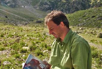 Leyendo ‘El viaje de Pau’ a los pies de la Munia. Foto: Lucía Pastor