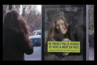 Se trata de una impactante campaña del gobierno francés destinada a intentar evitar que los peatones crucen los pasos de cebra sin mirar, y así parar los demoledores y crecientes datos: 4.500 peatones sufren accidentes cada año en Francia.Se ha usado, para este loable empeño del Gobierno francés, tecnología interactiva para conseguir que los peatones sepan qué se siente, cuando están a punto de ser atropellados, en una especie de frío ultimátum, a modo de un "espabila o revienta" casi literal.Mediante la ya citada tecnología interactiva, se muestra al peatón “despistado” cruzando en rojo, y tras el ruido de un importante frenazo “enlatado”, pero que hiela el alma, antes de que el sorprendido peatón pueda comprender nada, ve en una marquesina anexa lo que pudo ser y, afortunadamente, quedó en un “casi”-cruel pero esclarecedor ensayo de un percance que no fue. Un primer plano de su cara desencajada por el susto, llena la pantalla de la marquesina, junto con un envenenado recordatorio: "No corras el riesgo de mirar a la muerte a la cara". ´