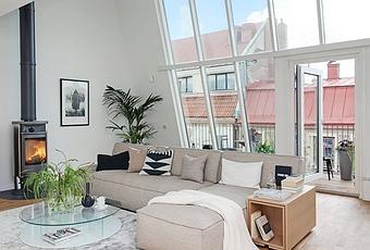 Cuando vi este duplex fue un flechazo y te lo tenia que enseñar. Es un gran ejemplo de como enlazar espacios y hacer una distribución más que acertada. En él los metros son super aprovechados ya que su punto fuerte es la distribución. Abajo gran salón comunicado por un pasillo con la cocina-comedor, más un dormitorio y baño al que han añadido un armario para guardar zapatos y materiales deportivos. Arriba otra sala de estar más dos dormitorios y baño. Todo esto sin mencionar sus terrazas en total 3 en el que disfrutar de los rayos de sol. Decoración muy cuidada todo basado en el blanco puro y toques inox dando modernidad al espacio.Eso si algo que destacar es la luz que se consigue por el ventanal del salón,