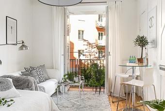 Con una reducida cocina en un armario, una sala de estar y un dormitorio que comparten espacio, puede ser la opción perfecta para un primer piso de estudiantes, para un apartamento vacacional, o para ese mini piso de soltero que recibe amigos (pero no macrofiestas).
