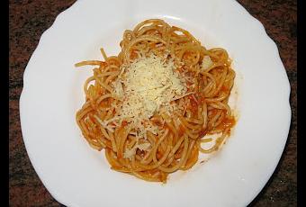 Ahora solo falta cocer la pasta siguiendo las instrucciones del fabricante con un poco de sal, colarla, darle un golpe de agua fría y calentarla junto con la salsa. Si se quiere se le puede añadir queso por encima cuando se sirva en la mesa.