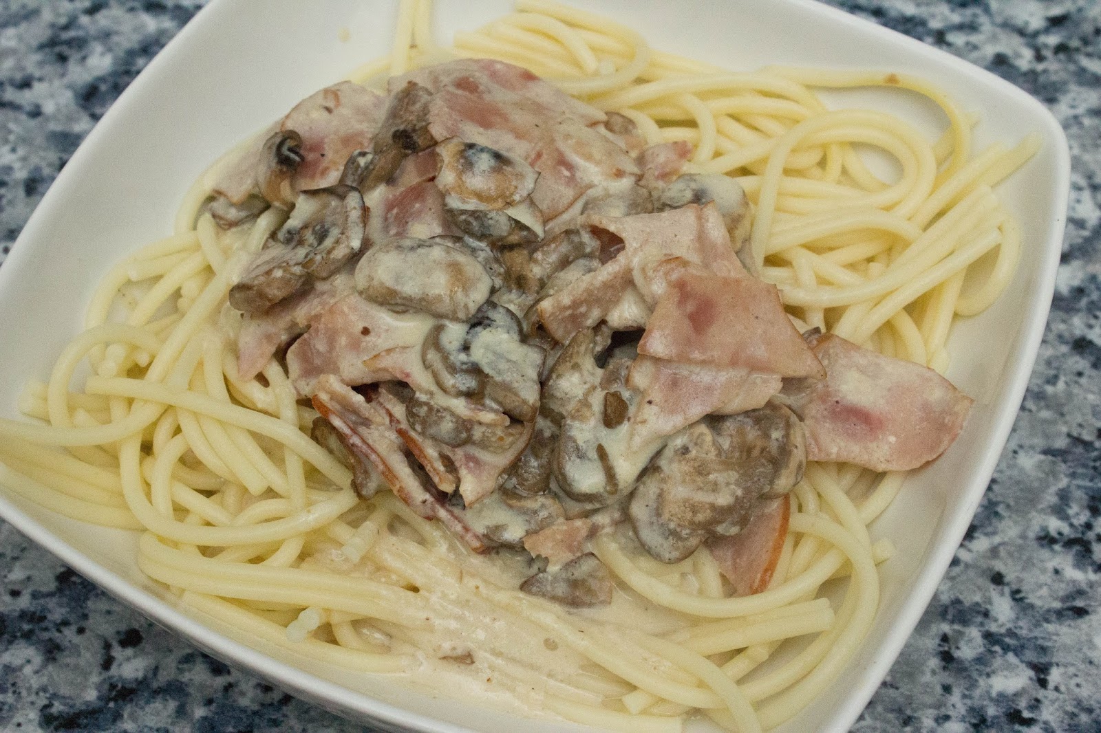 Hoy traigo unos espaguetis carbonara ligeros de pavo, son igual de deliciosos y encima no tienes que saltarte la dieta.
