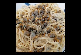 Incorporar los espaguetis. Lo ideal es sacarlos del agua directamente a la sartén, como se hace en Italia, o escurrirlos pero no enfriarlos.