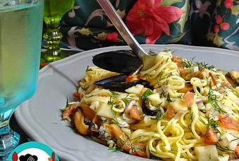INGREDIENTESPARA 2 PERSONAS.500 GR DE MEJILLONES.1 PAQUETE DE ESPAGUETIS FRESCOS.1/2 MANZANA.1 TOMATE.ENELDO FRESCO.1 CUCHARA DE MOSTAZA ANTIGUA.SAL Y PIMIENTA.ACEITE DE OLIVA.1 CEBOLLETA.2 DIENTES DE AJO.VINAGRE DE MANZANA.