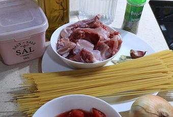 Ingredientes para hacer espaguetis con conejo en Thermomix ®