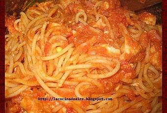 Espaguetis1 lata de tomate fritoPolloBaconOréganoAceite de oliva