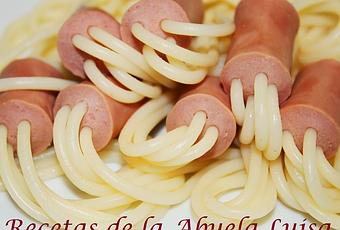espaguetis con las salchichas en abundante agua con sal durante unos 8-10