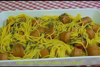 La elaboración es muy simple ya quee tan solo hay que cortar las salchichas en trozos pequeños, insertas unos 4 ó5 espaguetis en la salchicha y luego cocer la pasta.
