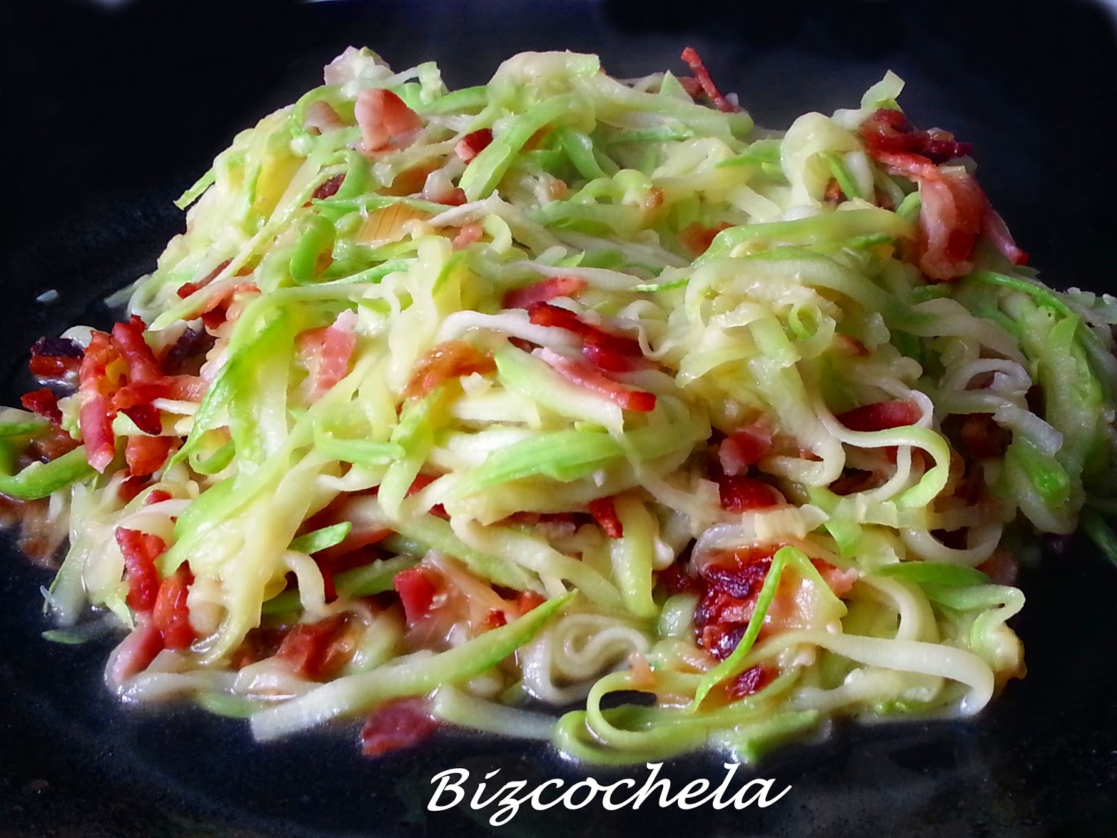 Comenzamos la semana con un plato de pasta sin pasta.....ESPAGUETIS DE CALABACÍN, una forma muy muy sana de preparar un plato de pasta, pero prescindiendo de los hidratos de carbono....perfecto para la operación post navidad.