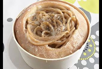 Hoy os traemos una deliciosa receta que destaca por su original presentación, y es que se emplata dentro del propio queso, así se aprovecha hasta el último gramos del mismo, ¡que está riquísimo!Ingredientes para 2 personas:- 200 gr de espaguetis integrales- 1 torta del Casar de La Comercial Narváez- Sal- Pimienta negraReceta:- En una olla con agua hirviendo y una pizca de sal, cuece los espaguetis integrales durante el tiempo que indique el fabricante.- Escúrrelos y reserva.- Corta la corteza superior del queso con un cuchillo.- Guarda la corteza para emplatar después.- Vacía el interior con una cuchara.- Caliéntalo a fuego lento en una sartén.- Cuando su textura sea líquida, añade los espaguetis y mezcla bien.- Introdúcelos dentro de la corteza del queso.- Espolvorea un poco de pimienta negra molida por encima.