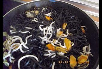 Para esta receta utilizaremos unos espaguetis con tinta de calamar, los venden en todos los supermercados.Y tienen ese tono negro tan característico.