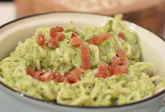 Servimos los espaguetis con la salsa de brócoli removiendo bien para que se integre el sabor.