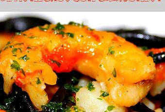 350 gramos de espaguetis negros2 Chocos16 GambonesGuisantesPimiento rojoAceite de Oliva VirgenVino blancoSal