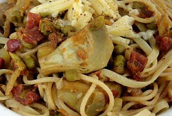 - Escurrir la pasta, saltear en la sartén con las verduras y servir con queso rallado.