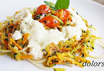 Emplatar: poner los espaguetis, encima las verduras, salseamos y colocamos un poco de queso gorgonzola desmenuzado.