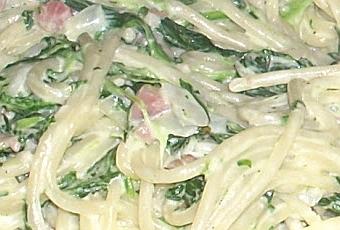 espaguetis para 2 personas 200gr de espinacas 2 ajos bacon nata liquida sal pimienta albahaca queso rallado