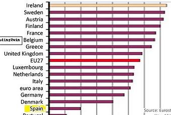 Aquí os pongo un gráfico interesante ,trata sobre el porcentaje de población entre 20-24 años con al menos la educación secundaria ,como se ve salimos muy mal parados siendo el segundo con menos porcentaje solo por detrás de Portugal . un saludodaytrading2win