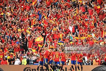 Los celebración de un país, Getty Images.El combinado nacional debutó con: De Gea; Juanfran, Piqué, Sergio Ramos, Jordi Alba; Sergio Busquets, Cesc, Iniesta, Silva; Nolito y Morata.