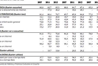 En cuanto a consumo de prensa, la mayoría lee periódicos de información general. La cifra de consumo por internet pasó de 14% en 2011 a 26.8% en 2015.