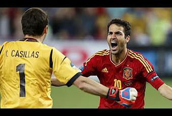 Casillas y Cesc festejan el pase a la final de Kiev - Reuters.