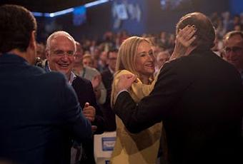 Rajoy, saludando y apoyando a Cifuentes en la convención del PP.José Antonio Zarzalejos, ex director de ABC, publicaba el pasado sábado en El Periódico de Catalunya el artículo “España, en estado de perplejidad”, en el que mencionaba los últimos siete días que conformaron un compendio del despropósito en el que se instaló nuestra vida pública. “El caso de Cristina Cifuentes –decía Zarzalejos– no es el más grave de los muchos de corrupción que se han producido en el Partido Popular. Se trata de un episodio de naturaleza distinta a los ya conocidos porque no es de carácter económico, sino que incorpora una insoportable dosis de inmoralidad cívica que cualifica a la presidenta de la Comunidad de Madrid como una política sin escrúpulos y a su partido como una organización irreversiblemente viciada por la connivencia con comportamientos inaceptables. La imagen que proyectan los populares es más patética que irritante. Más que indignación produce tristeza y hasta conmiseración que en el partido en el Gobierno se hayan perdido todas las referencias de integridad que se le deben suponer a una formación democrática. Cada minuto que pasa con Cifuentes ostentado la presidencia de la Comunidad de Madrid el escarnio es mayor y la previsión de una debacle electoral del PP adquiere un realismo más vivo. Escalofría, sin embargo, que los conservadores se dirijan a paso ligero a la quiebra en las urnas como ya lo hizo la UCD, en 1982. Perplejidad, pues, por el asombroque causa la inconsciencia del PP sobre la suerte que se le avecina”.