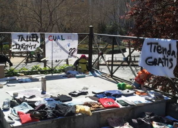 Comidas y tiendas gratis del 15-M en apoyo a la huelga.