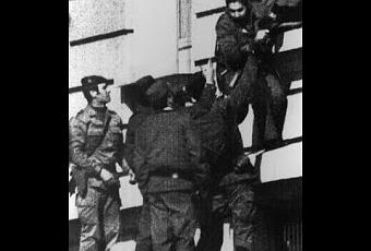 En la fotografía que ilustra el post, guardias civiles salen por una ventana del Congreso de los Diputados tras un "brillante servicio" llevado a cabo por la Benemérita institución el 23 de febrero de 1981.