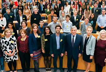 Foto de grupo con Antonio Tajani, Presidente del Parlamento Europeo. Primera jornada de European Youth Media Days. Bruselas.