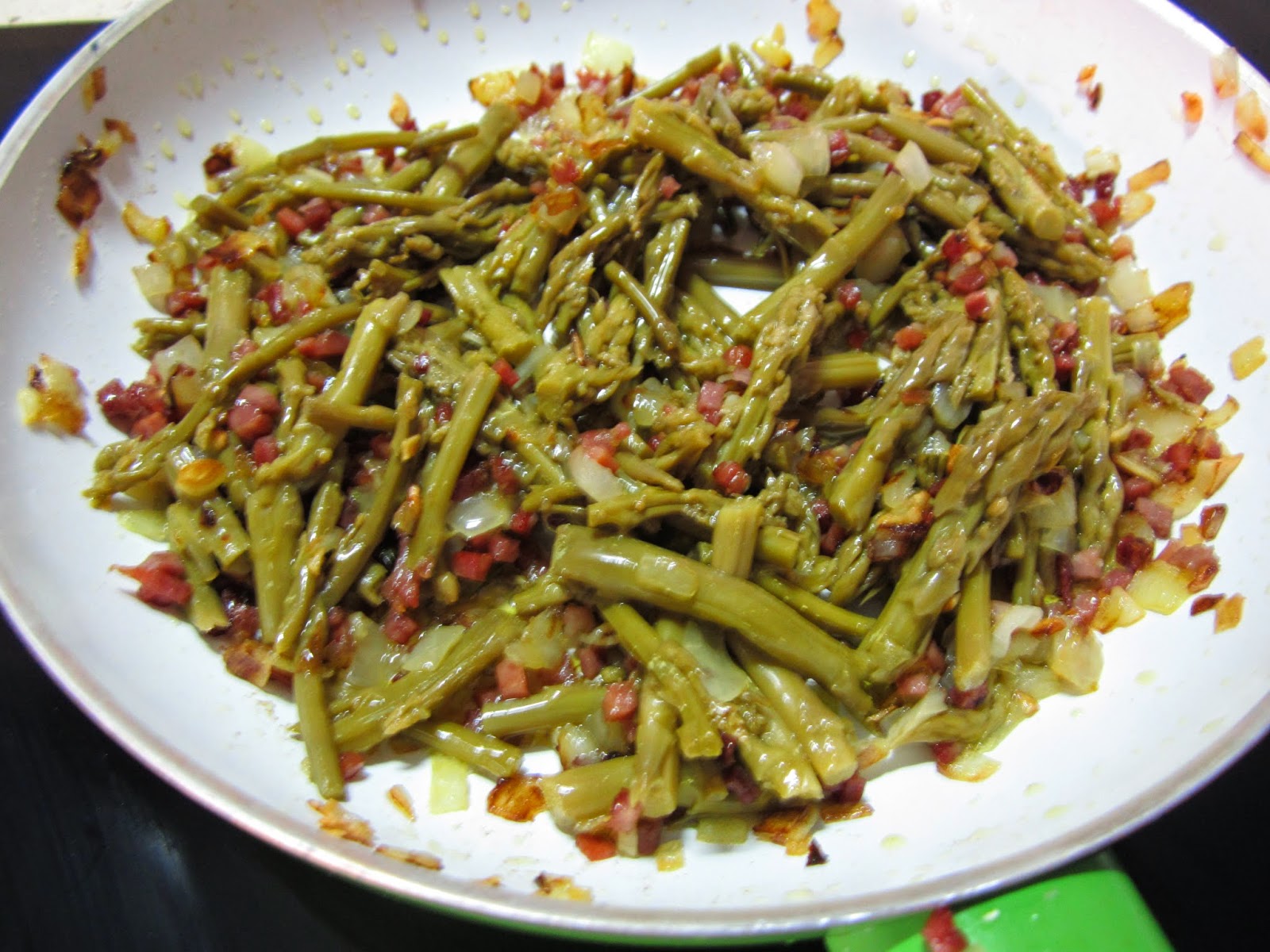 Añadimos los espárragos y salteamos un poco más, en este paso se le pueden añadir un par de huevos sin embargo esta vez no me apetecía.