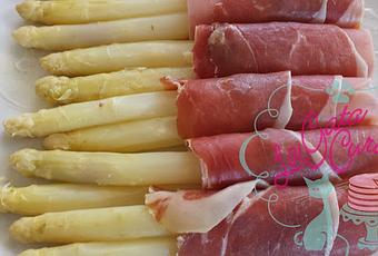 1 kg de esparragos blancos de Tudela 200 gramos de queso en lonchas (gouda está bien)200 gramos de jamón de York del cuadrado 200 gramos de jamón serrano finitoQueso para gratinar