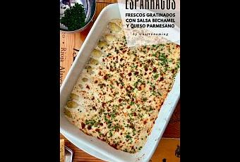 RECETA Nº 451 - ESPÁRRAGOS FRESCOS GRATINADOS CON SALSA BECHAMEL Y QUESO PARMESANO