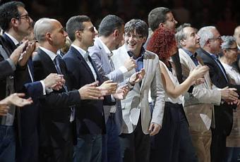 La cúpula del independentismo catalánCon o sin referéndum la Generalitat tiene ya preparado el mecanismo para activar la secesión inmediata de Cataluña del resto de España si el Gobierno central impide que se celebre la consulta para la independencia, prevista para finales de septiembre o principios de octubre. El País ha tenido acceso al borrador secreto de la Ley de Transitoriedad Jurídica, la conocida como ley de ruptura. Se trata de un documento que aspira a funcionar como constitución provisional catalana durante el plazo de dos meses que, según recoge el mismo texto, tendría el Parlament para poner en marcha un proceso constituyente que desembocara en la "república parlamentaria" de Cataluña. "Si el Estado español impidiera de manera efectiva la celebración del referéndum, esta ley entrará en vigor de manera completa e inmediata cuando el Parlamento constate este impedimento", afirma la disposición final del borrador.