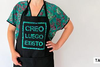 Todos los asistentes practicarán sobre un delantal negro básico que se podrán llevar a casa al finalizar el taller.Habrá plantillas para que estampes diseños con mensajes craft. ¡Será tu uniforme de currante!