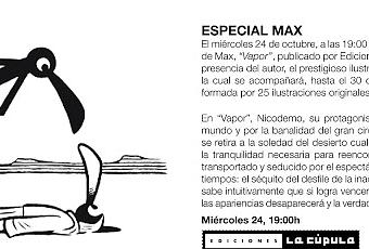 La exposición está formada por 25 originales que forman parte del libro y que han sido elaborados y seleccionados por su autor, Max.El trabajo ha sido elaborado a tinta china sobre papel y podrá visitarse del 22 de octubre al 30 de noviembre de 2012. Entrada libre.Max presentará su libro y exposición el 24 de octubre, a las 19:00 horas, en el fórum de Fnac L’Illa (Barcelona). Le acompañarán el crítico y editor de cómic Toni Guiral y el guionista Pepe Gálvez