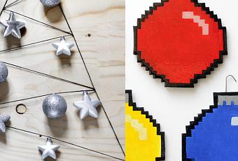 Identificador de Lugar – Estrella de la muerte – Esferas de 8-bits – Arbolito de navidad alternativo – Envolura para regalos hecha con sellos – Cookie in a jar – Centro de mesa con velas.