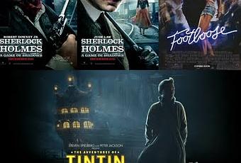 Los trailers en cuestión son de las películas (en orden de publicación) Footloose, Las Aventuras de Tintin: El Secreto del Unicornio y Sherlock Holmes: Juego de Sombras.Footloose: Ren MacCormack se muda con su madre desde Boston a la pequeña localidad de Bomont donde se topa con un cambio radical en el modo de vida de sus habitantes. Años atrás la comunidad sufrió la perdida de cinco adolescentes cuando volvían de fiesta. Los concejales y el reverendo decidieron establecer unas leyes que prohibían la música alta y el baile para evitar más desgracias. Nadie se opone a esa ley hasta le llegada de Ren oponiéndose a ella, devolviéndole la vida a la ciudad y enamorándose de la hija del reverendo.