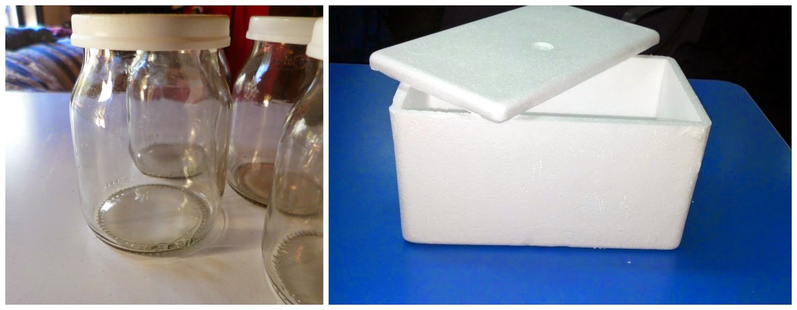 El contenedor en realidad era el packaging , pero cuando le mandé una foto para que lo vea quedó más contenta con la caja de telgopor de postre helado que con los frascos!
