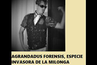 ARAÑUS RESBALIENSIS O MILONGUERO ATRAPA ALIENTO: Esta formidable especie suele tener una considerable fuerza que utiliza en el abrazo de tal forma que una vez que atrapa a la milonguera no la suelta. En ataques severos se ve a la mujer intentando en vano pisar, teniendo la curiosa sensacion de no encontrar nunca el suelo. A su vez la presión del arañus - que siempre parece creer que la mujer se le resbala, de ahí su nombre - se va incrementando y puede ser letal en un Pugliese, donde hasta puede verse profusión salivar. El arañus vive en sociedades altamente gerarquizadas donde el líder de la manada es quien tiene el abrazo mas férreo. Se alimenta principalmente de carne, vino y pizza. Aunque también se ha visto a arañus que se animan a comer Tofu y sopa miso creyendo erróneamente que les dará nueva vitalidad.