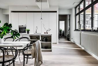 De planta casi rectangular este piso sueco de 165 m2 posee una espectacular cocina abierta que conquista.