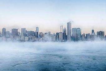 El Lago Michigan y Chicago envueltos en una bruma fantasmal