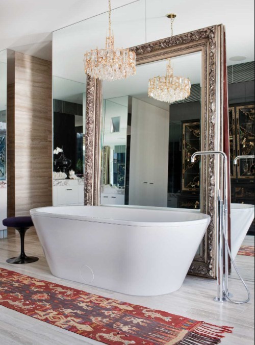 También los he visto en el baño...aunque a la siguiente foto no le veo mucho sentido..¡la bañera tapa casi la mitad del espejo!